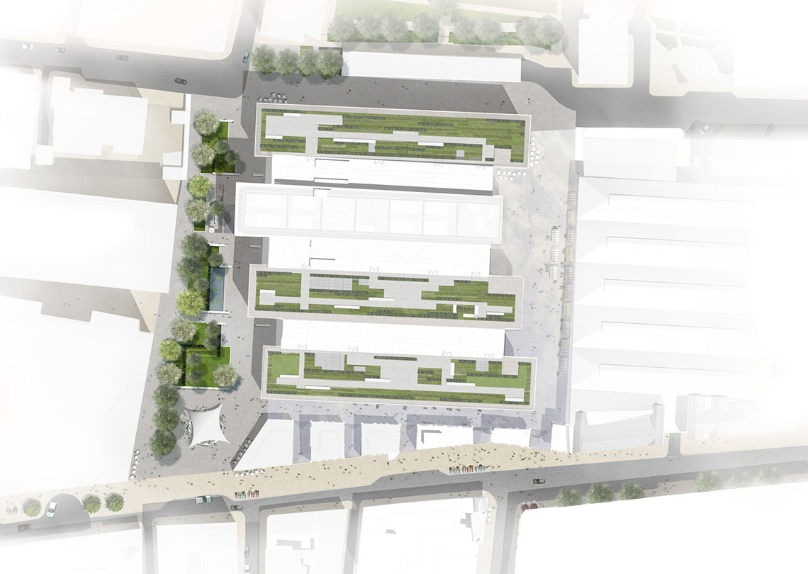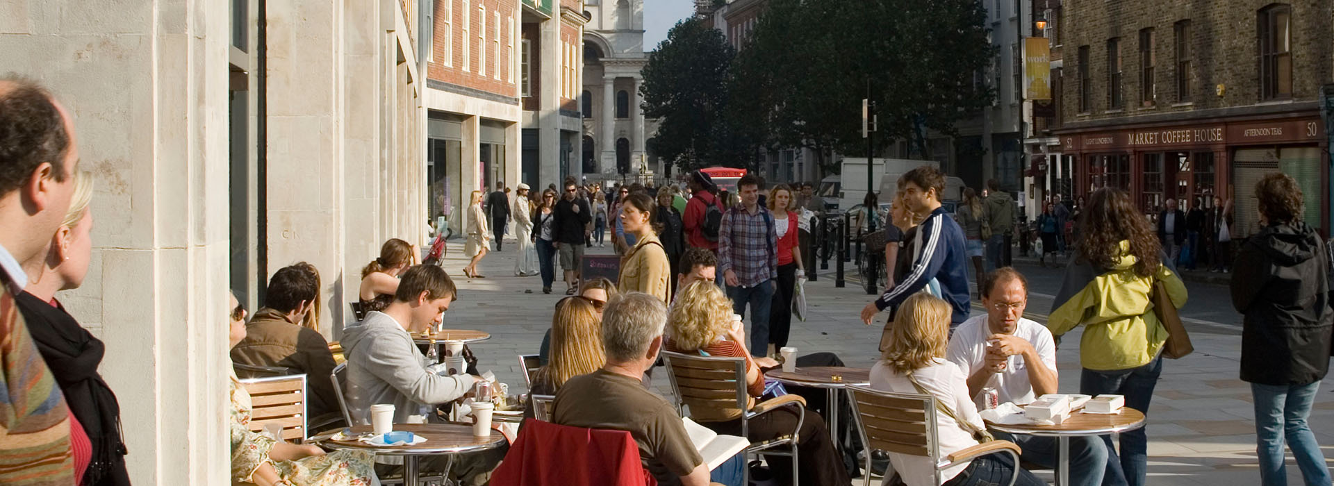 The design of the public realm responded to its context, enhancing the experience of the townscape by opening up views towards Hawksmoors historic Christchurch. This provided clearly legible routes through the scheme, which include the retail parades and covered market area.