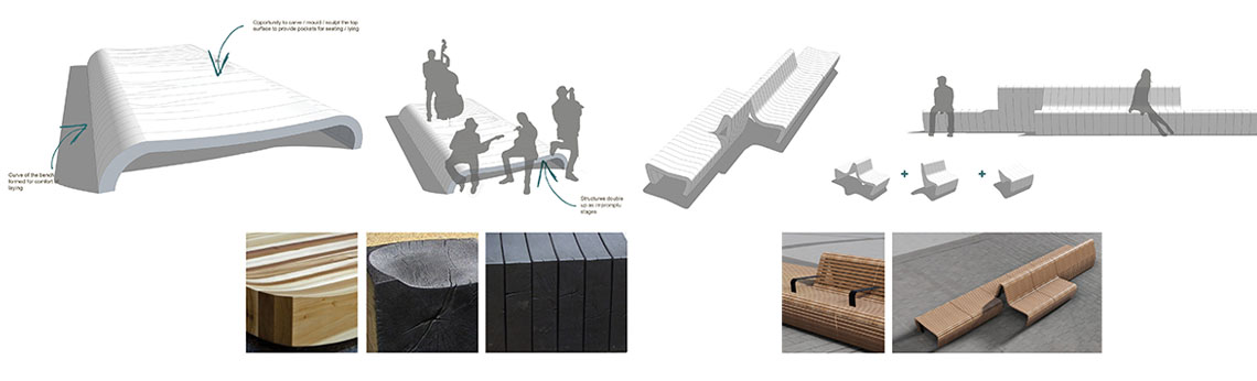 The Market Square includes mature tree planting, which has been arranged to define and protect a central space ideal for markets and other events. This space is further emphasised by the placement of three monolithic platforms/benches which give south-facing flexible seating opportunities.
